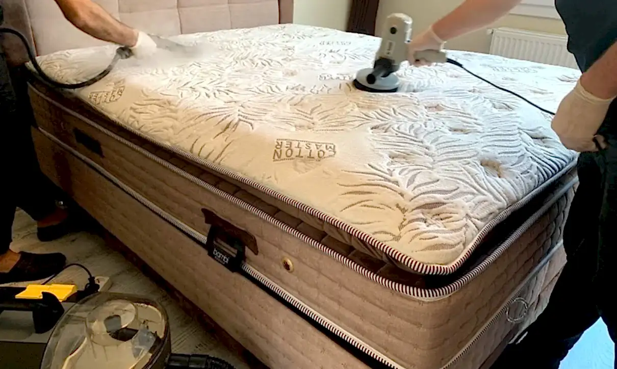 2. Toz ve Kirlerin Temizlenmesi: Yatak yüzeyindeki toz, kıl ve diğer kaba kirler güçlü vakum makineleri ile temizlenir.